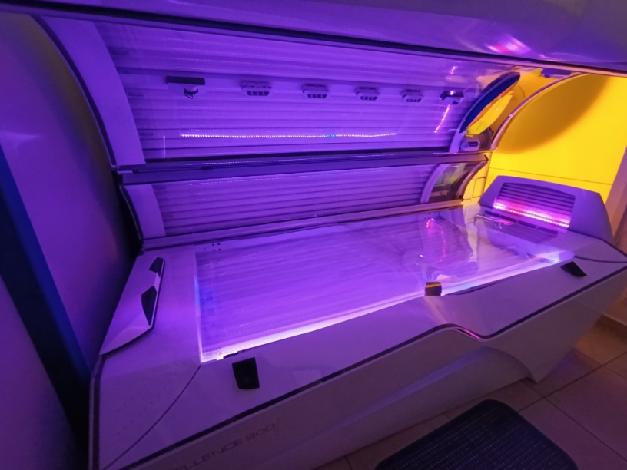 - se 45 x 160W trubicemi, obličejovými výbojkami 3 x 400W, opalovačem ramen 13 x 25W a se speciálními opalovacími trubicemi Diamond + Beauty light (kombinace UV a speciálního růžového Beauty Light světla) => dohromady tedy se 58 trubicemi + 4 obličejové výbojky